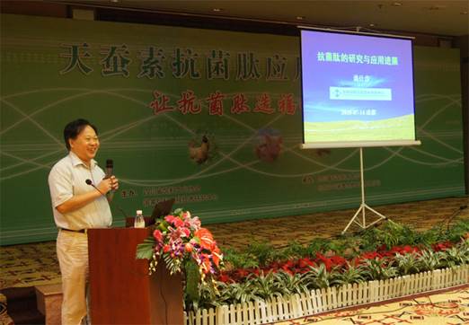 農(nóng)業(yè)部飼料工業(yè)中心副主任、國家飼料工程技術(shù)研究中心副主任、中國農(nóng)業(yè)大學(xué)教授譙仕彥博士在會上做了《抗菌肽研究進展與應(yīng)用趨勢》的報告。闡述了抗菌肽的機理和作用,抗菌肽是生物體內(nèi)經(jīng)誘導(dǎo)產(chǎn)生的一種具有生物活性的小分子多肽,分子量在2000~7000左右,由20~60個氨基酸殘基組成。抗菌肽的抗菌譜比傳統(tǒng)抗生素更寬,既有抗革蘭氏陽性菌和革蘭氏陰性菌的作用,又有抗真菌和病毒的作用。抗菌肽的作用與其對病原菌細胞膜的迅速破壞相關(guān),并且抗菌肽的作用不涉及特定的靶位,完全是陰陽離子的物理作用,而不改變細菌表面的結(jié)構(gòu)和帶電性能,因此抗菌肽幾乎不產(chǎn)生抗藥性。譙博士還詳細講解了抗菌肽在各個領(lǐng)域的應(yīng)用,其中特別分析了在動物上應(yīng)用抗菌肽的實驗數(shù)據(jù)和研究成果。