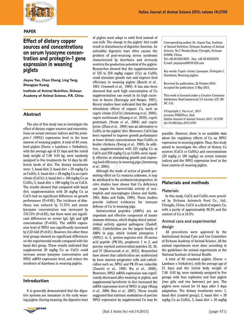 Effect of dietary copper sources and concentrations...in weaning piglet