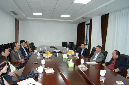 四、麥院士一行與畜科生物研發中心—華神生物制品公司主要經營者、骨干人員、專家親切交談與誠懇建議指導,畜科生物陰文奇老總匯報了畜科生物的工作與未來發展,闡述了豬偽狂犬病活疫苗SA215株(撲偽優)是純化三基因工程缺失株,是國家863計劃重點科研項目,為自主研發、消滅豬偽狂犬病的尖端生物武器,該成果獲得了國家科技進步二等獎、國家新獸藥證書,現列為國家發改委“綠色農用生物產品高技術產業化專項”。