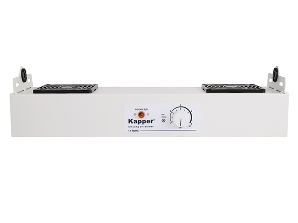 1、在產品經過輸送帶過程中加裝除靜電離子風機,先對產品在經過絕緣輸送帶時摩擦產生的靜電進行有效消除,降低產品上的靜電值。